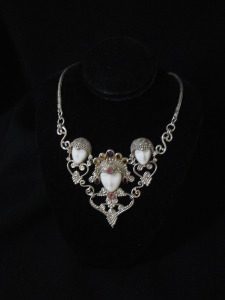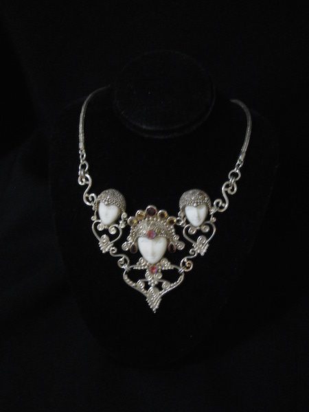 –Unique sterling silver necklace, 18” adjustable to 20”, carved bone faces with multi-color stones. $179 ON SALE: $90