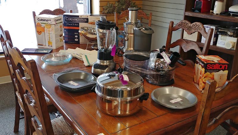 Stop in to grab terrific deals on many different small appliances including blenders, food processors, crock pots, coffee machines, mixers and more! And it’s not just appliances – shop the store to pick up linen aprons, crisp linen tea towels, and many sets of colorful napkins. We also have complete sets of dinnerware, glasses and flatware. There is surely something for everyone!