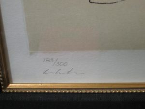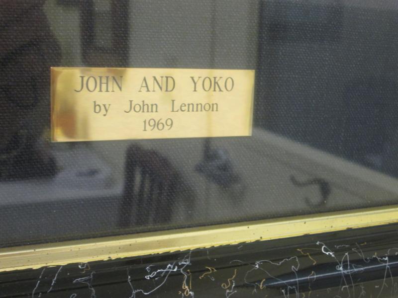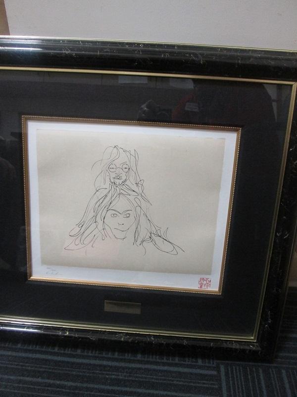 John and Yoko, 1969 lithograph #183/300 from the Bag I Collection. Created as a wedding gift from John to Yoko. Signed, embossed and Lennon’s personal chop meaning “Like a cloud, beautiful sound.” Beautifully matted and framed. 62″ x 60″ framed. A beautiful collector’s item for the Beatles fan.